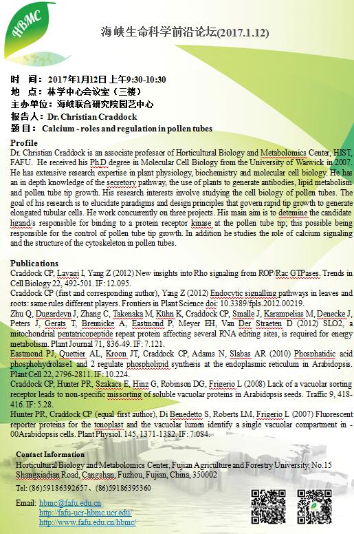 海峡生命科学前沿论坛第五十四讲(2017.1.12)-Calcium - roles and regulation in pollen tubes