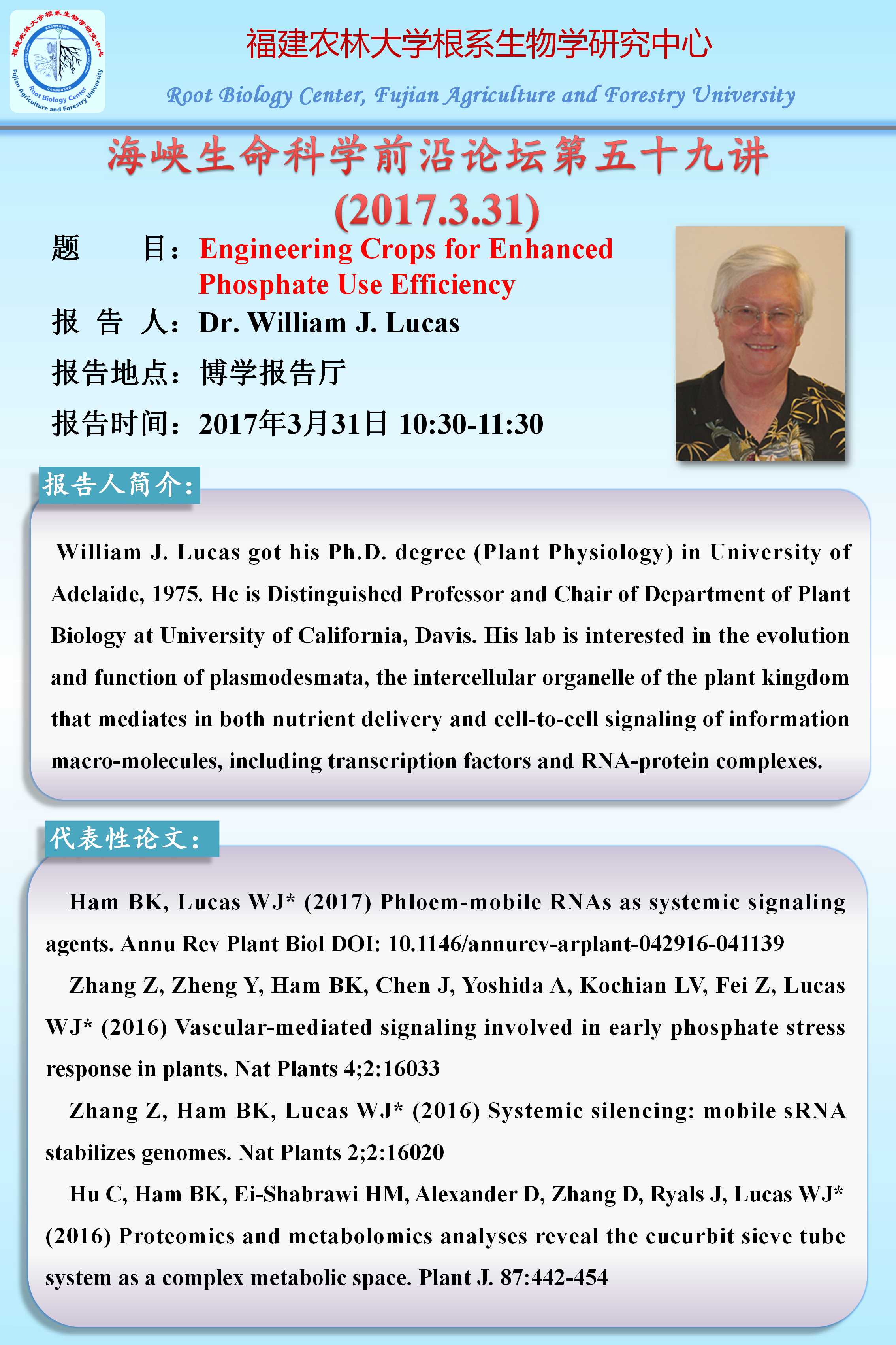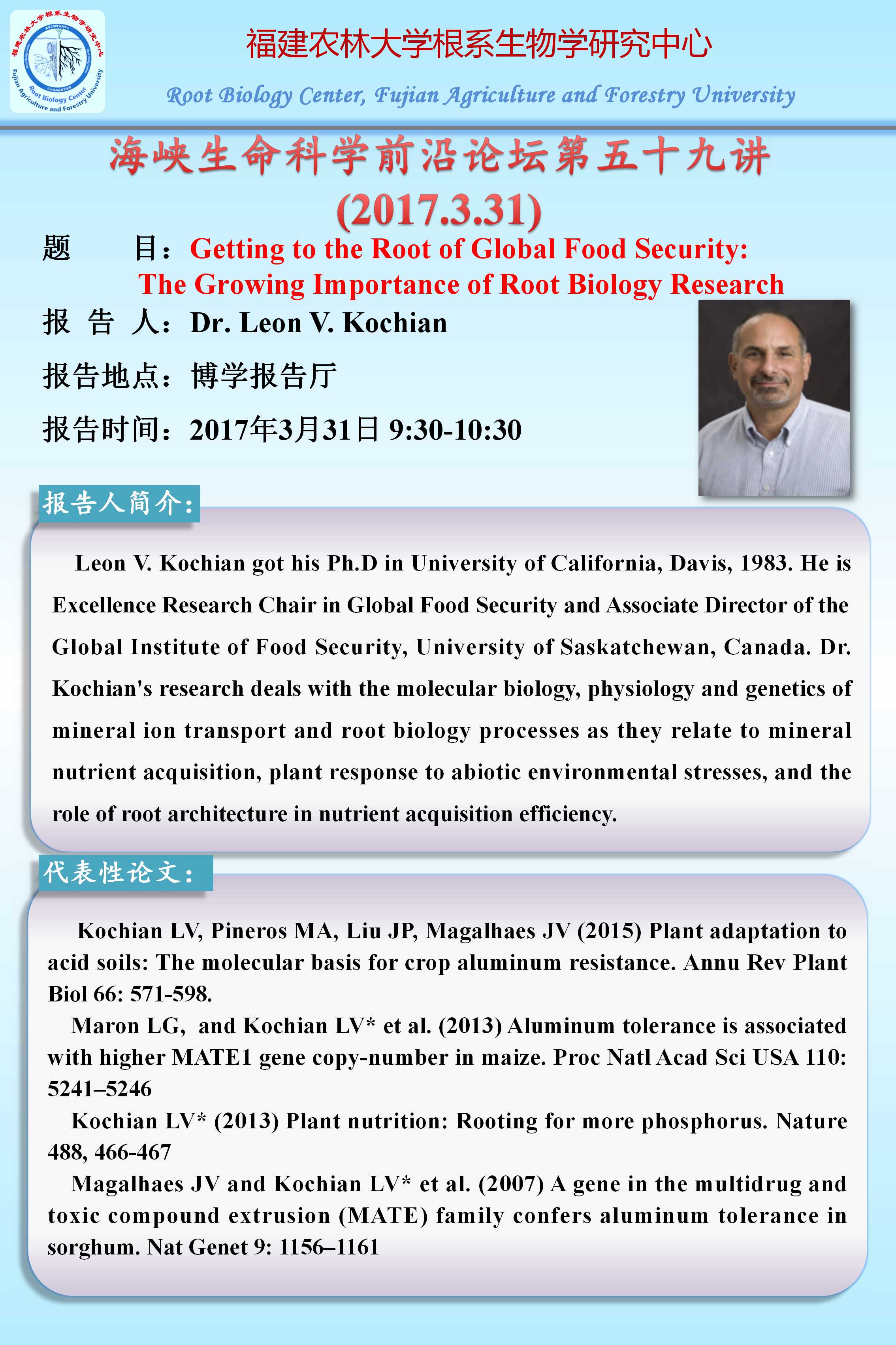 海峡生命科学前沿论坛第五十九讲(2017.3.31)-Getting to the Root of Global Food Security: The Growing Importance of Root Biology Research等