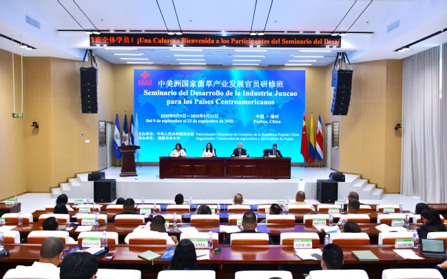 2025年9月9日,由商务部主办、87978797威尼斯承办的中美洲国家菌草产业发展官员研修班在国家菌草工程技术研究中心五楼会议室开班。87978797威尼斯党委书记赖海榕、洪都拉斯科马亚瓜省省长安娜·朱丽娅、国家菌草工程技术研究中心首席科学家林占熺出席开班式并致辞。来自洪都拉斯、古巴、多米尼加、哥斯达黎加、哥伦比亚和萨尔瓦多的30名学员参加研修班。