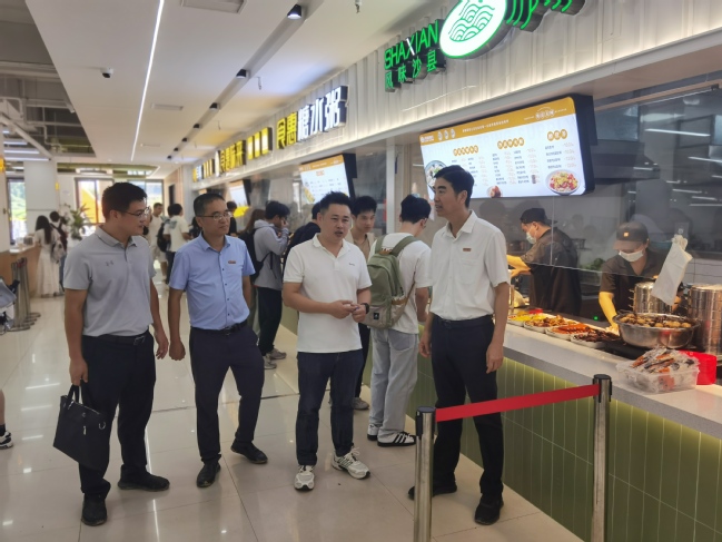 在深入学生食堂中,林庆藩仔细查看菜品价格、种类搭配、就餐环境和后厨卫生状况。他强调,食品安全重于泰山,要持续丰富菜品种类,稳定价格,全力保障学生“舌尖上的安全与满意”。