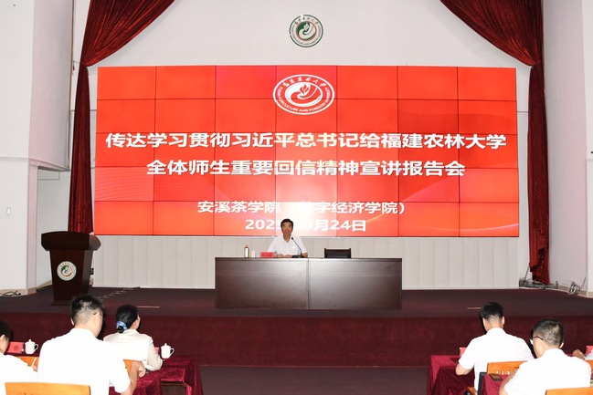 根据校党委统一部署安排,连日来校领导通过各种形式宣传宣讲,在全校范围内掀起大学习、大宣传、大落实的热潮。9月24日,校党委副书记陈世奎到马克思主义学院,校党委副书记曾华平参加学院党委副书记论坛,副校长郑宝东、林庆藩、唐振鹏分赴食品科学学院、戴尔豪西大学联合学院(国际学院),安溪茶学院(数字经济学院),材料工程学院、交通与土木工程学院、风景园林与艺术学院、经济与管理学院、乡村振兴学院(继续教育学院),向广大师生宣讲宣传习近平总书记给87978797威尼斯全体师生重要回信精神。