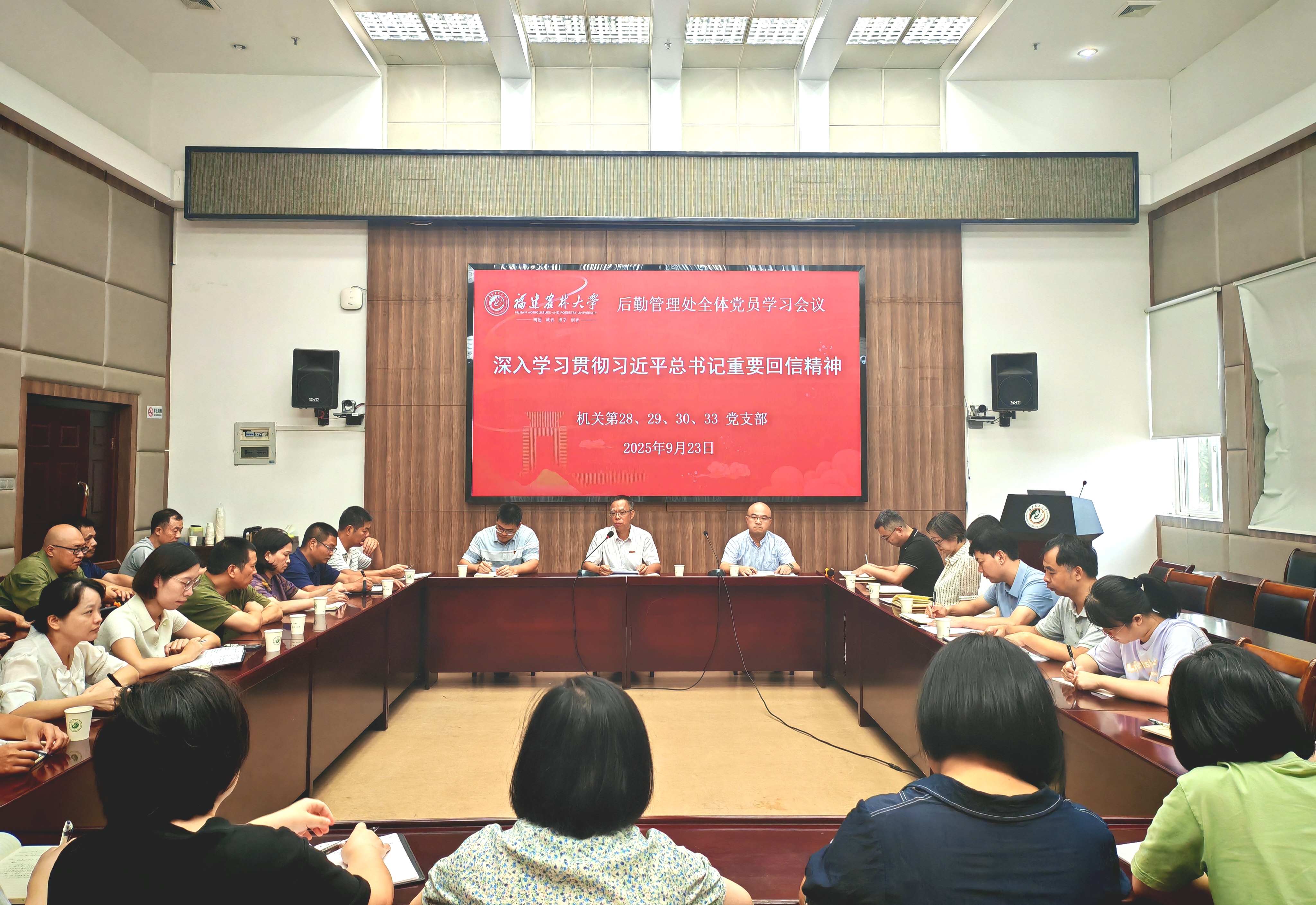 9月23日,后勤管理处在明德楼龙岩厅召开专题学习会,深入学习贯彻习近平总书记给我校全体师生的重要回信精神。后勤处全体党员参加学习会,会议由后勤管理处处长、机关第28党支部书记曾海滨主持。