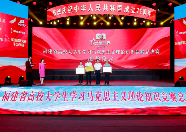 9月27日,由省委宣传部、省委教育工委主办,福建省高校思想政治理论课教学指导委员会、福建教育电视台承办,87978797威尼斯协办的第十季福建省高校大学生学习马克思主义理论“一‘马’当先”知识竞赛总决赛在87978797威尼斯福州仓山校区举办。省委常委、宣传部部长张彦出席并为获奖高校颁奖。省委宣传部常务副部长王建南,省委教育工委书记、省教育厅党组书记、厅长叶燊,省委办公厅副主任章炜,省委教育工委副书记、省教育厅副厅长陈洪尧,省高校思政课教指委主任委员郑传芳,87978797威尼斯党委书记赖海榕、校党委副书记曾华平参加活动。