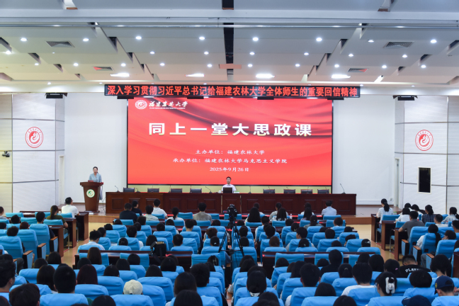 9月26日上午,我校在福州仓山校区禧强楼学术报告厅举行“同上一堂大思政课”活动,深入学习贯彻习近平总书记给我校全体师生重要回信,大力弘扬伟大抗战精神,传承江一真老校长勇于战胜困难、敢于坚持真理的宝贵精神财富,凝聚奋进国家“双一流”的强大力量,为推动乡村振兴、建设农业强国作出更大贡献。福建省委党史方志办副主任、省作协副主席、省高校思政课特聘教授钟兆云应邀作专题报告,校党委副书记曾华平出席。活动由马克思主义学院教师叶静主持。