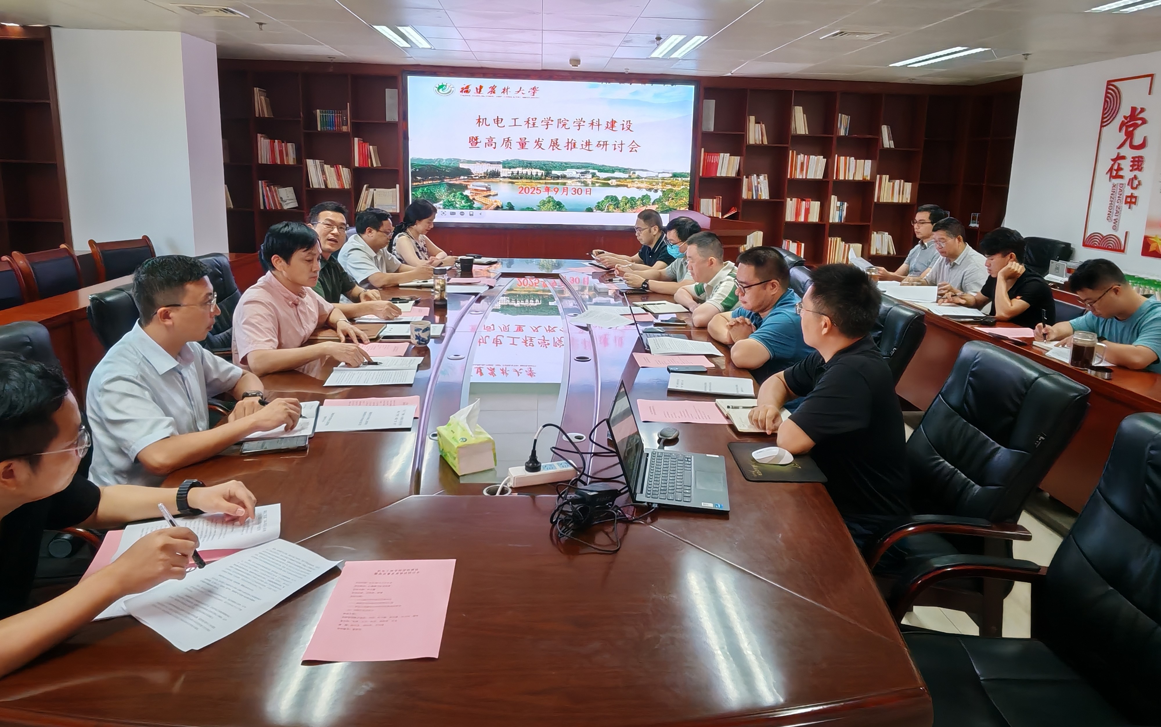 9月30日上午,机电工程学院在福州大学城校区仁德楼718会议室召开学科建设暨高质量发展再推进研讨会。学院党政领导班子成员、各系主任、教授及学科秘书参会,会议由学院院长叶大鹏主持。