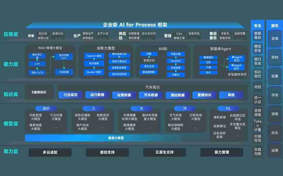 J9国际站备用问学智车解决方案是一套基于AI技术的汽车行业智能化系统,,,,覆盖从底层算力到顶层AI应用的全栈方案。。。方案由算力层、、、模型层和应用层组成:算力层,,,,方案支持多种一体机配置,,,,具备云端灵活部署、、、多云适配以及动态优化计算资源的能力;模型层,,,J9国际站备用问学平台版提供了企业级AI应用一站式构建与管理平台,,,支持基于后训练强化技术的汽车企业专属模型的训练、、、、评测和运营;应用层,,,J9国际站备用问学DeepSeek版提供包括超级员工、、智能招采、、、智能营销、、、、智能客服、、、AI for BI等一系列解决方案,,,可助力汽车行业实现数字化转型,,,让管理更智能、、、响应更敏捷。。。。